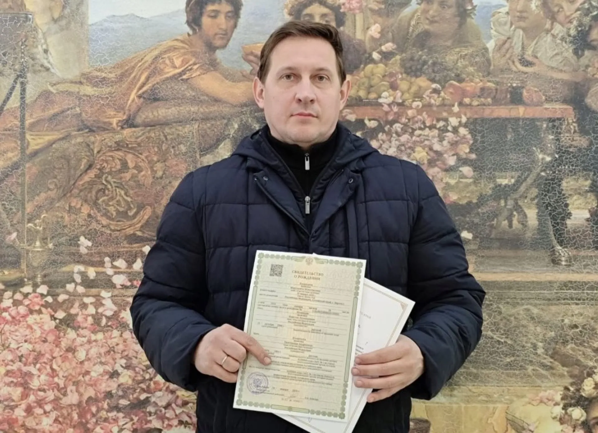 Сотрудники отдела ЗАГС поздравили отца малышки и вручили первый документ — свидетельство о рождении, а также поздравительный адрес губернатора Алтайского края Виктора Томенко.