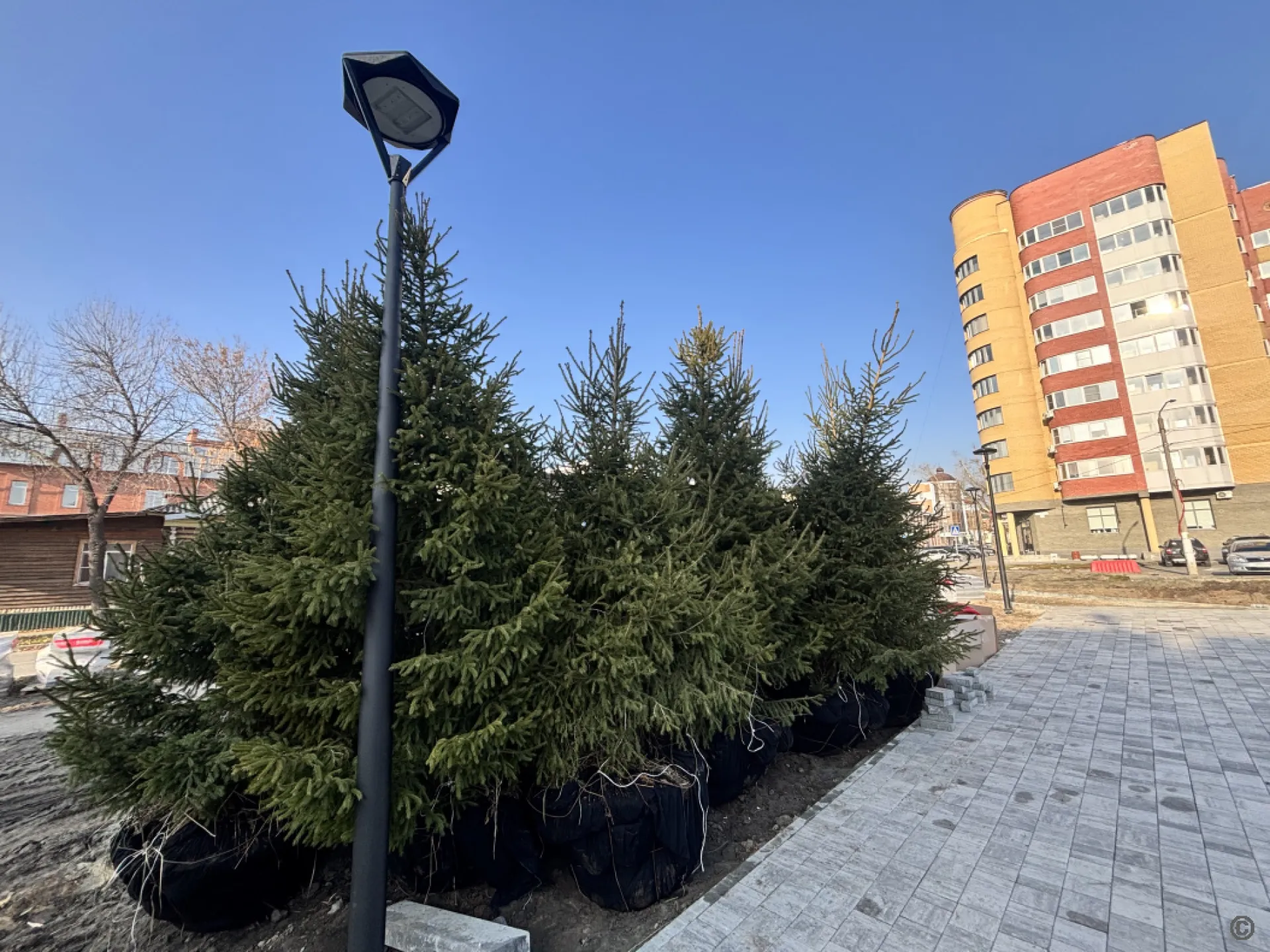 Деревья высаживают в новом барнаульском сквере