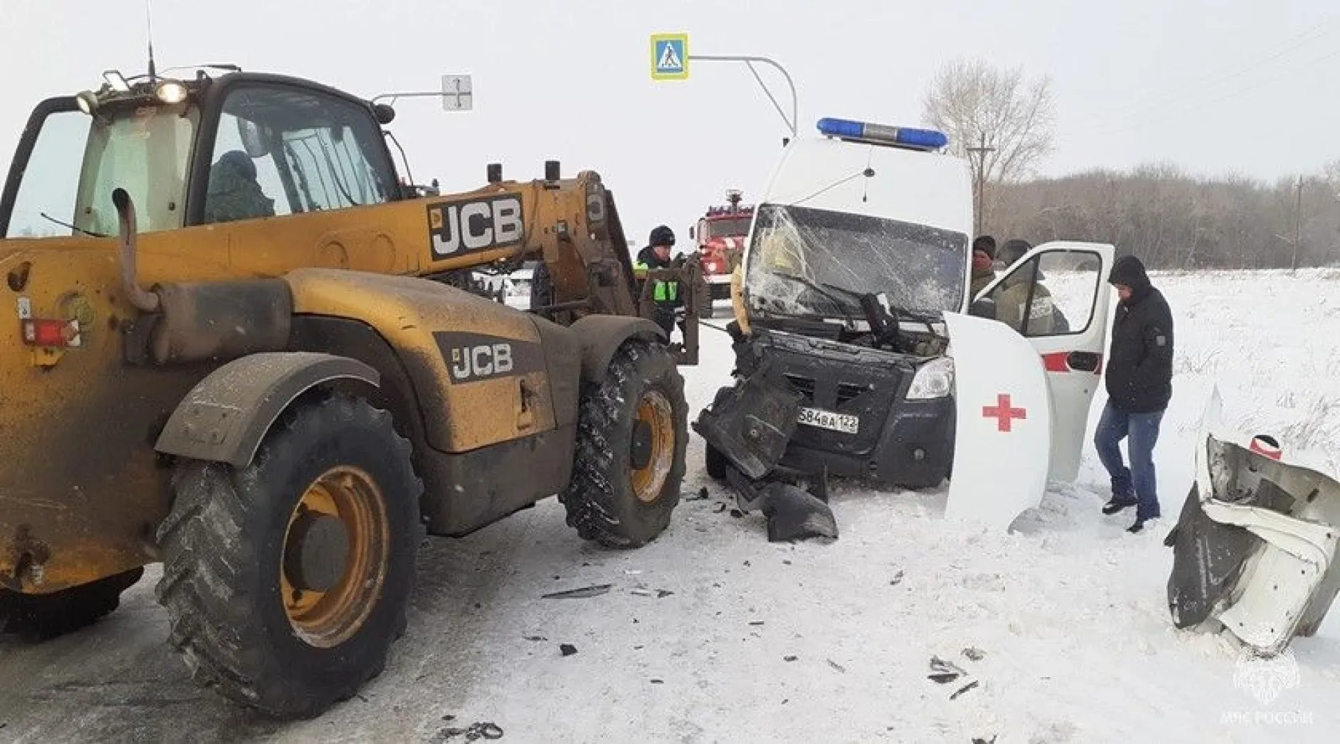 Скорая помощь и трактор столкнулись в Алтайском крае