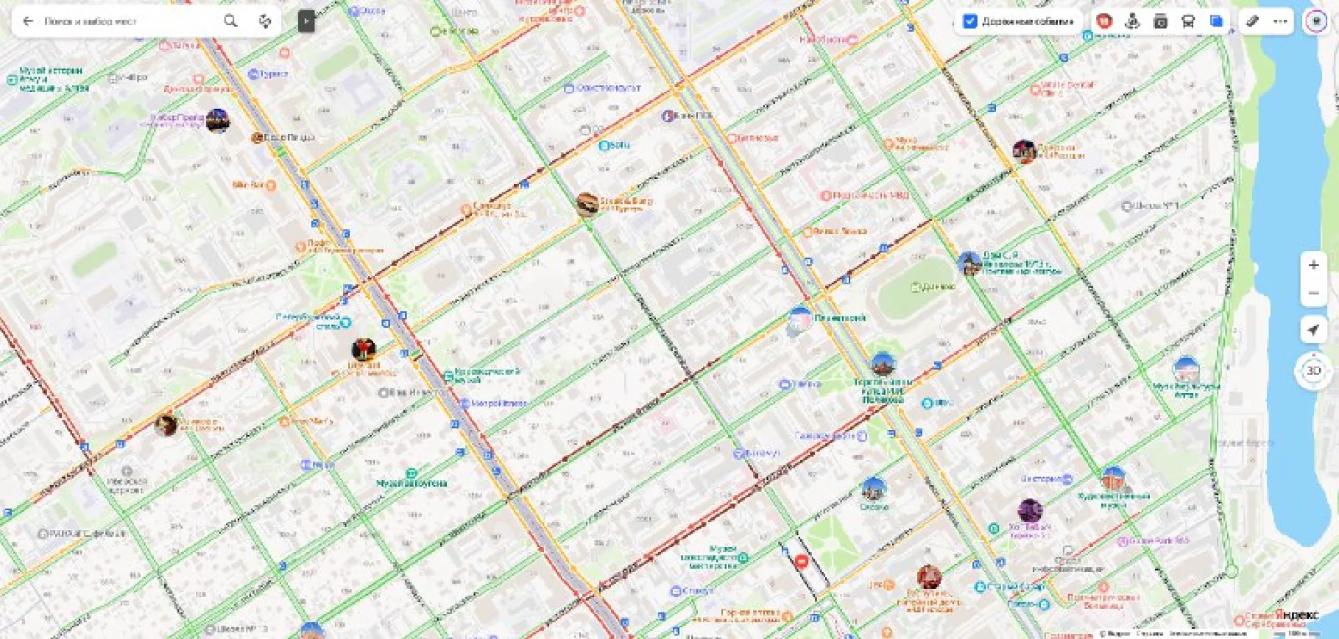 По данным сервиса "Яндекс.Карты", самые «бордовые» участки — проспекты Строителей, Ленина, улицы Молодёжная, Челюскинцев, Анатолия, Гоголя, Северо-Западная, Никитина, Гоголя.