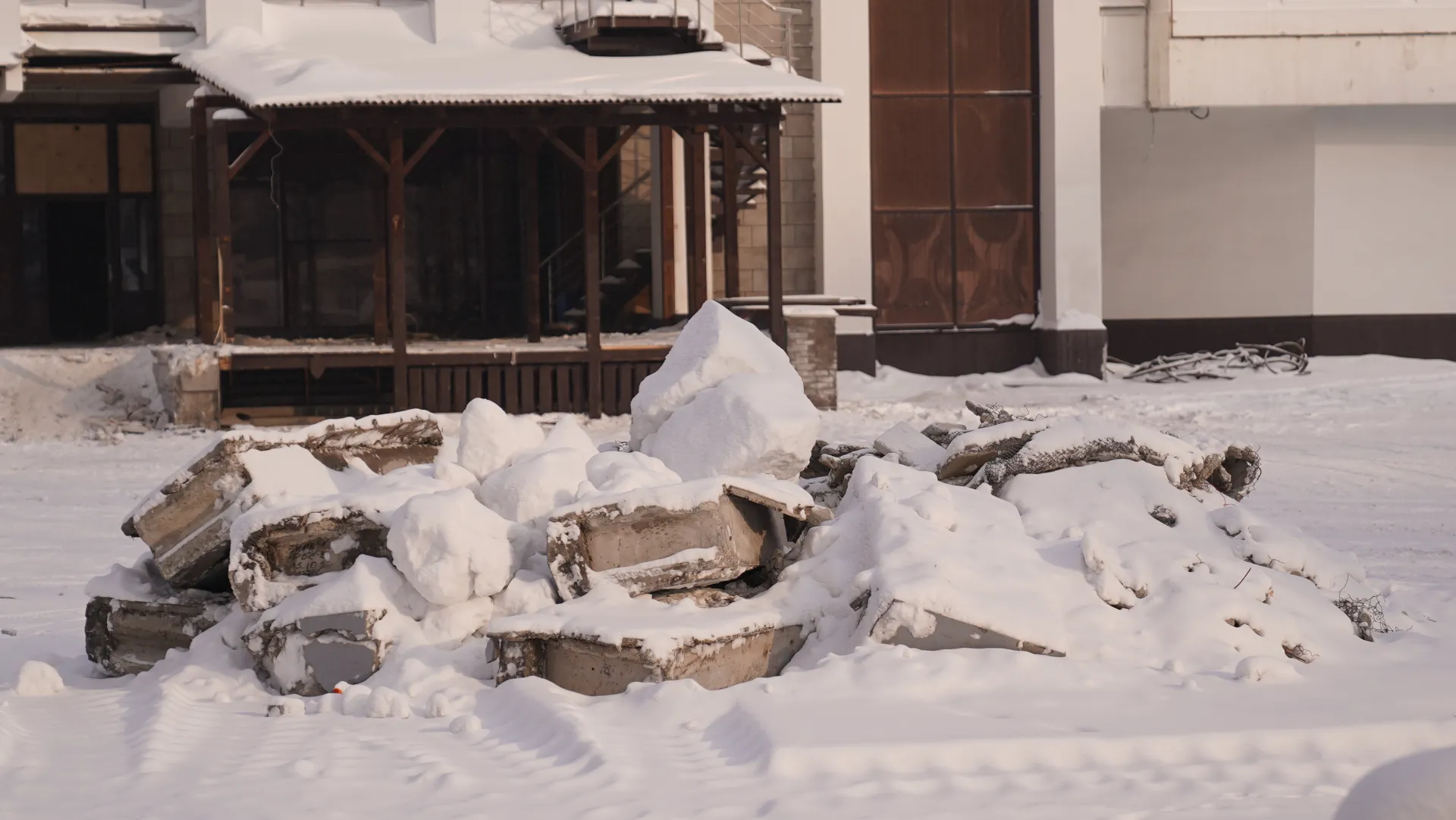 Сейчас рабочие устанавливают по периметру территории опоры для высокого защитного ограждения. Монтаж ведут аккуратно, стараясь не повредить растущие рядом деревья – забор огибает зелёные насаждения. Одновременно с этим строители уже практически разобрали крыльцо и летние веранды, а внутри помещений идут демонтажные работы. Как только ограждение будет готово полностью, начнётся основной снос конструкций.