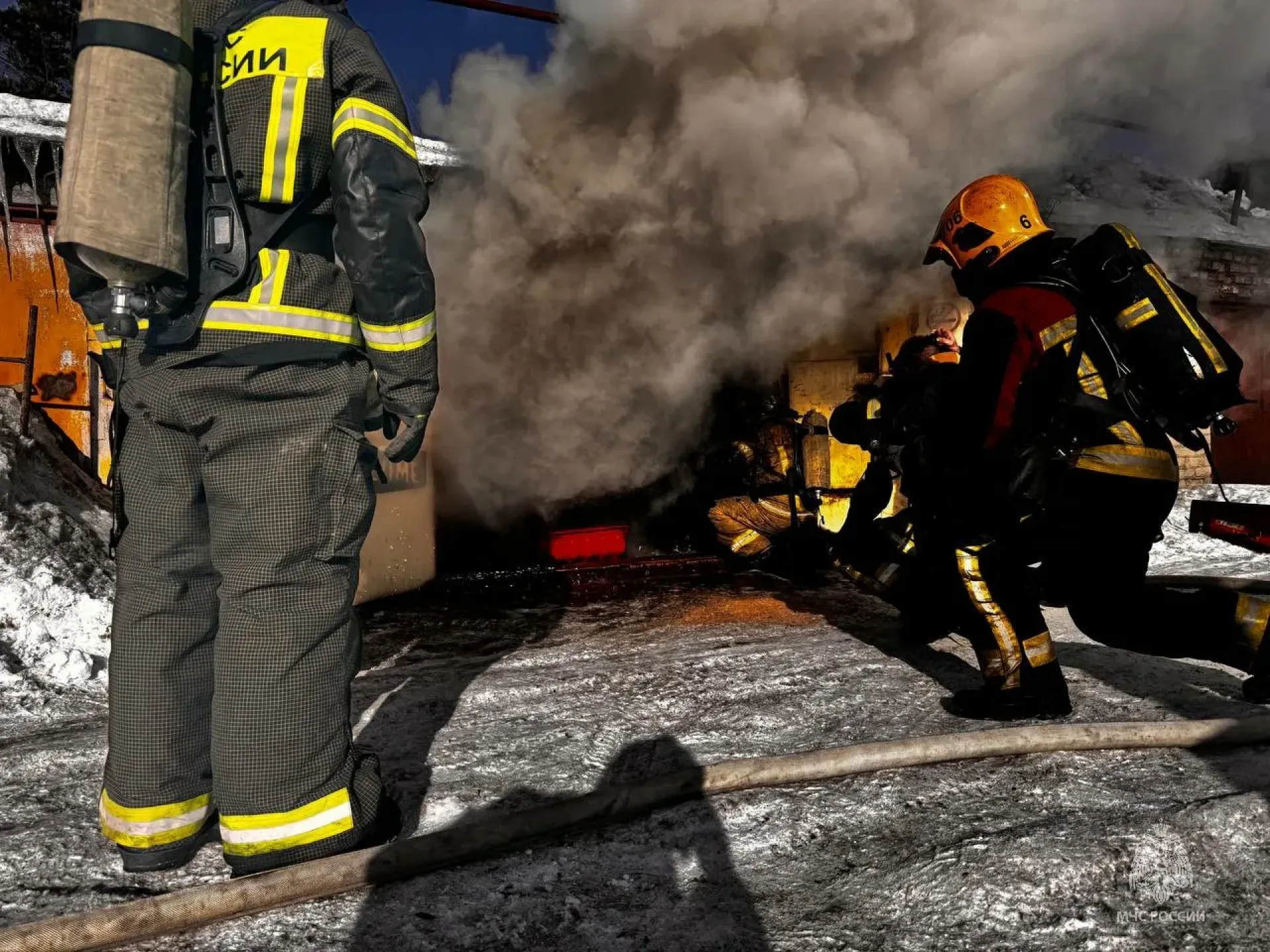 На момент прибытия первых пожарных подразделений из гаража шел дым. В тушении участвовали 24 огнеборца на 5 единицах техники.