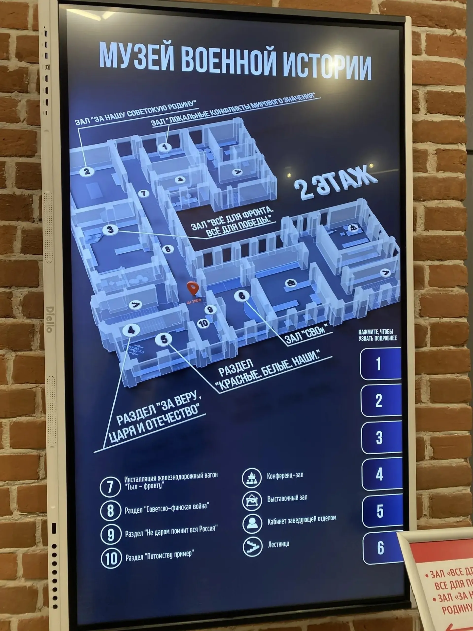 Гостям представили три первых зала: «Фронт» и «Тыл», посвященные Великой Отечественной войне, и новый зал «Специальная военная операция». В течение года планируется поэтапно ввести в строй еще шесть выставочных пространств, а также площадку для временных выставок, включая проекты из федеральных музеев.