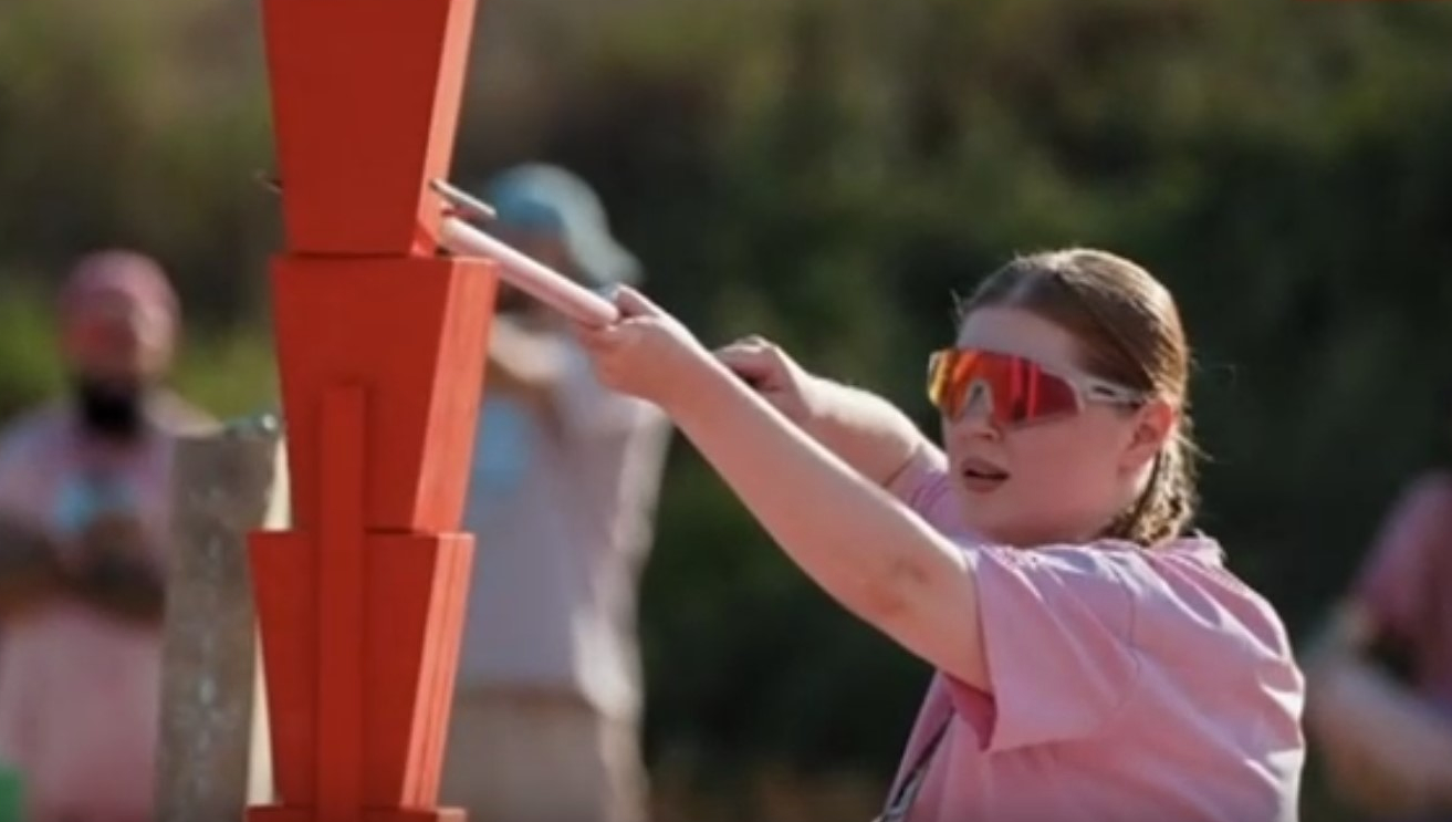 На большом испытании участникам предстояло с помощью двузубца перенести семь деталей на платформу и собрать устойчивую башню. Сделать это нужно было, проходя через небольшие отверстия в платформе. Дарья финишировала последней, поэтому автоматически отправилась на малое испытание «на вылет».