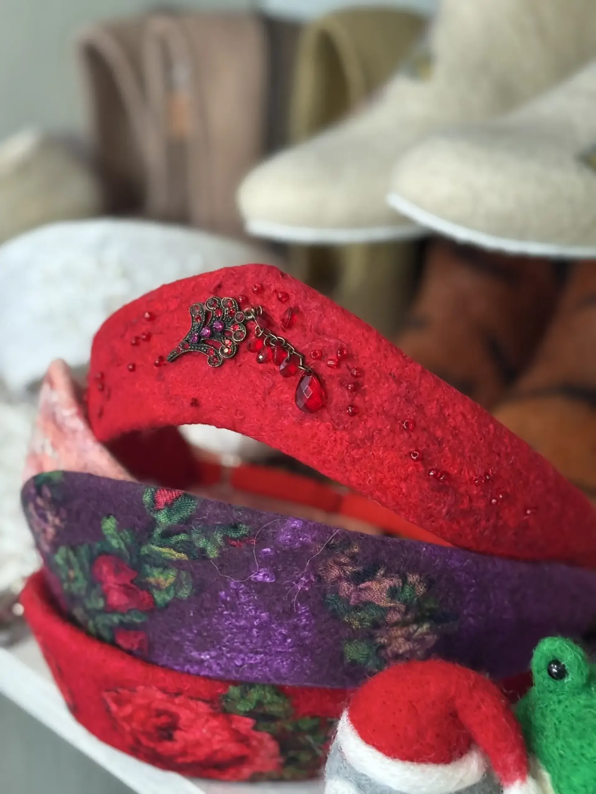 «Душа попросила, и я ушла в творчество. Первое изделие я очень хорошо помню, это были бусы, тогда я только узнала про валяние шерстью, что такое ремесло существует. И я сваляла бусы, сухим валянием это с помощью специальной иглы, на которой есть насечки. Она используется только в валянии шерстью», — рассказывает Галина Толкацкая.