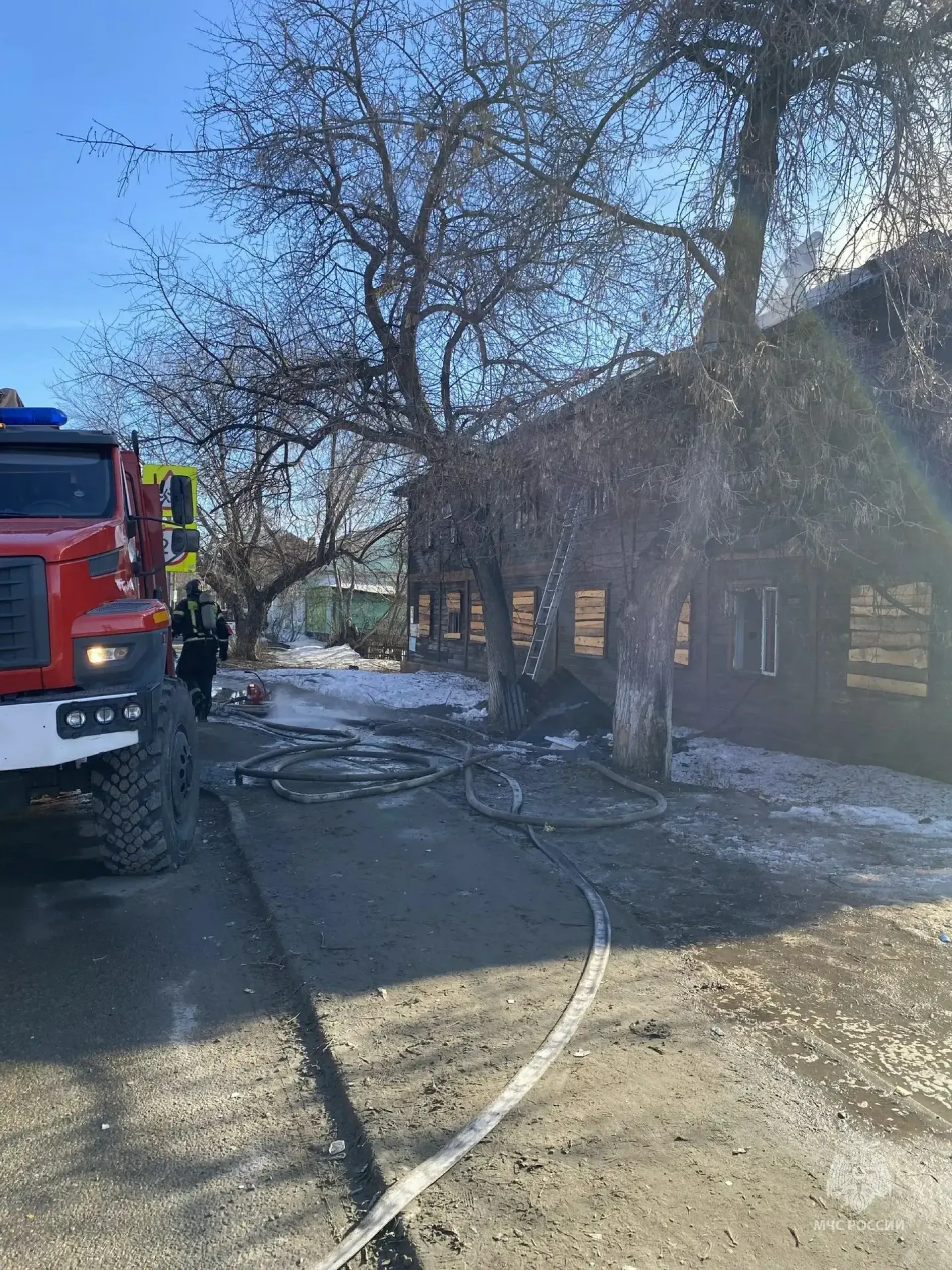 В Новоалтайске потушили крупный пожар в нежилом доме