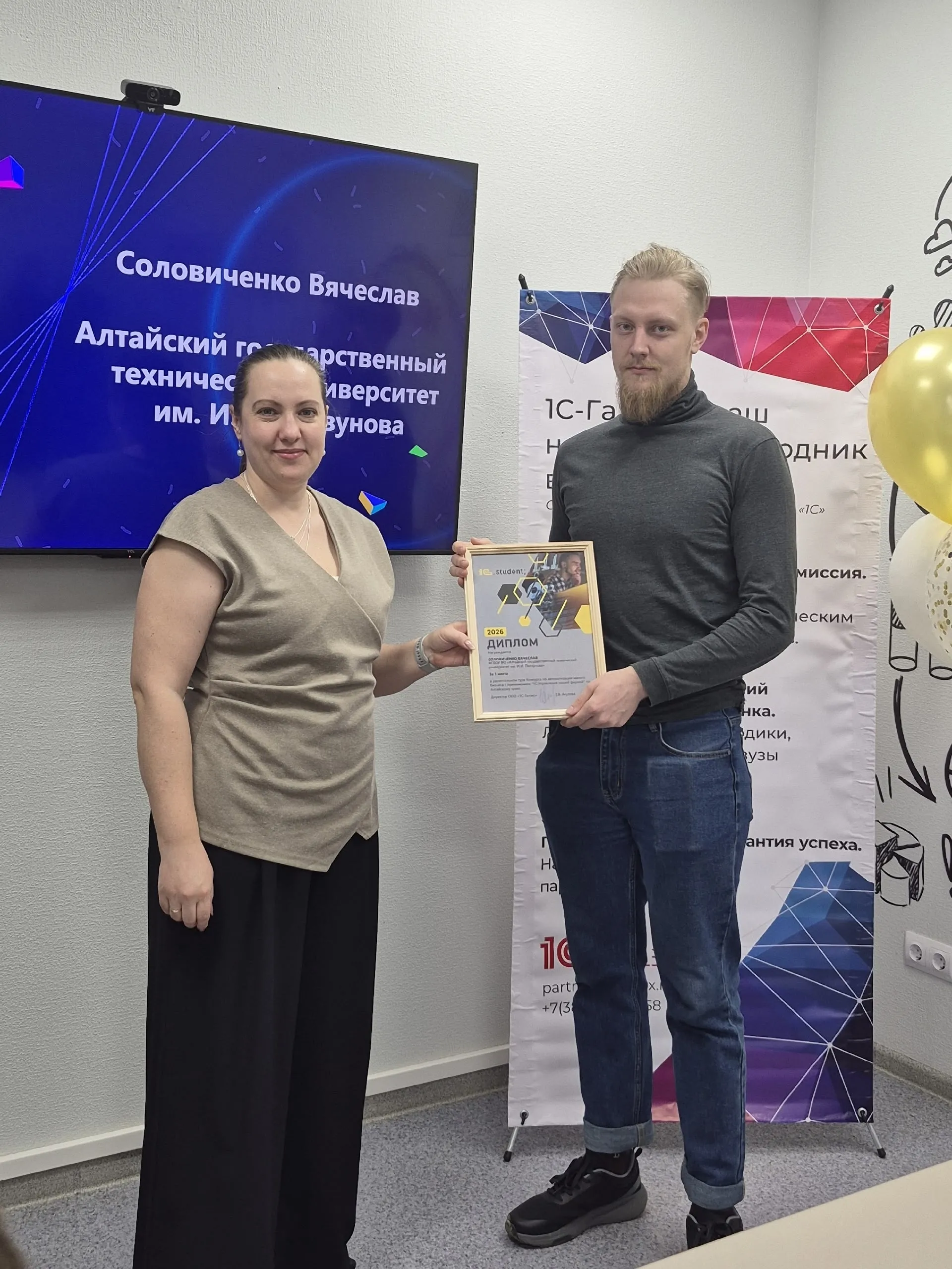 Вячеслав Соловиченко и Денис Никитин из Алтайского технического университета стали финалистами масштабных 1С: Соревнований. Из 6000 участников, представлявших вузы России и стран СНГ, отбор преодолели только 198 человек, сообщает пресс-служба политеха.