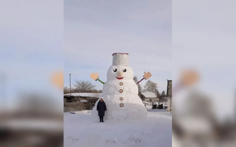 Гигантского снеговика сделали жители Курьинского района