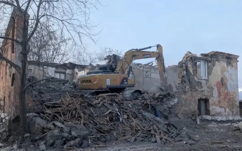 Аварийный дом сносят в Октябрьском районе Барнаула