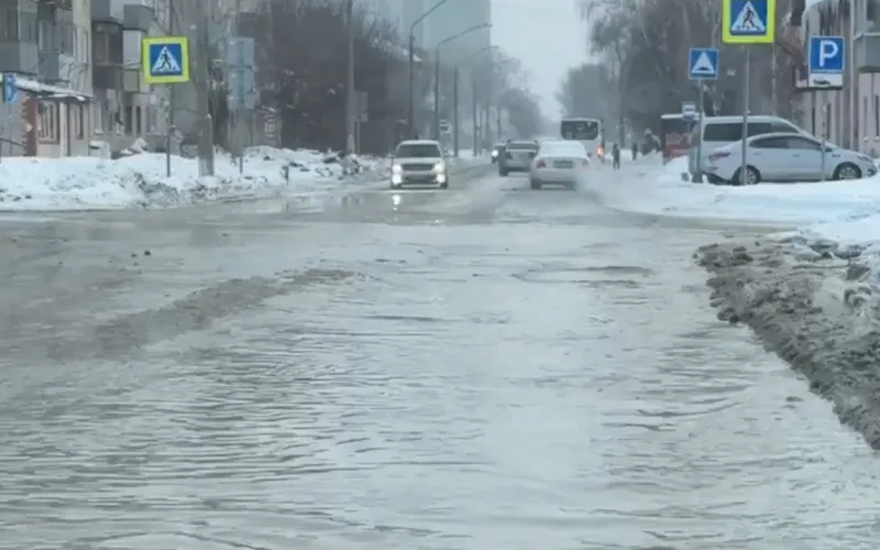 Дорогу затопило из-за коммунальной аварии в Барнауле