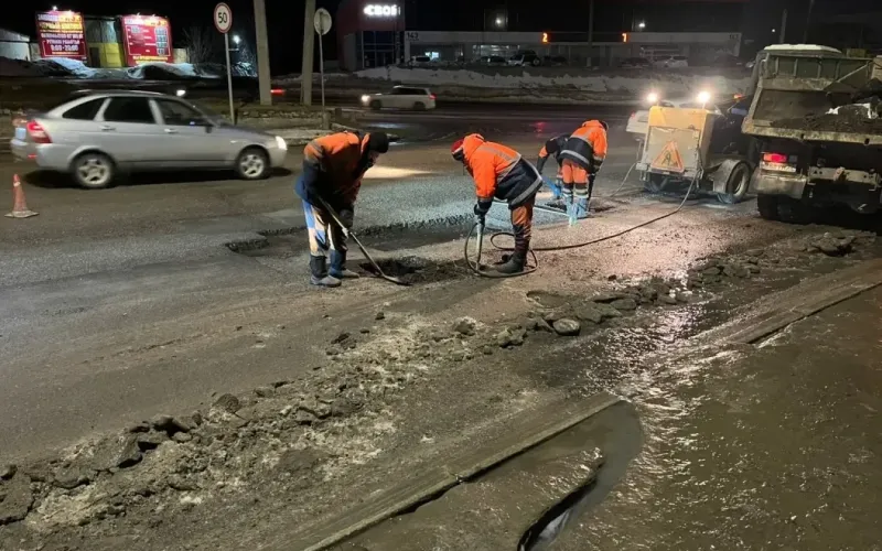 Ночной ремонт холодным асфальтом провели в Барнауле на двух улицах