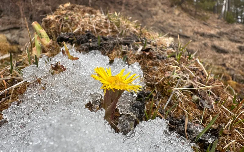 Мать-и-мачеха зацвела на Алтае