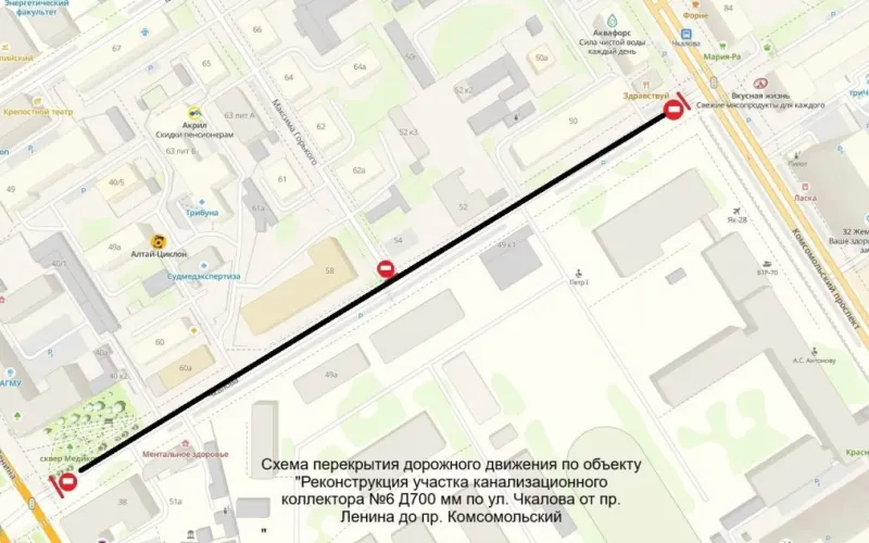 Более чем на два месяца перекроют движение на улице Чкалова в Барнауле