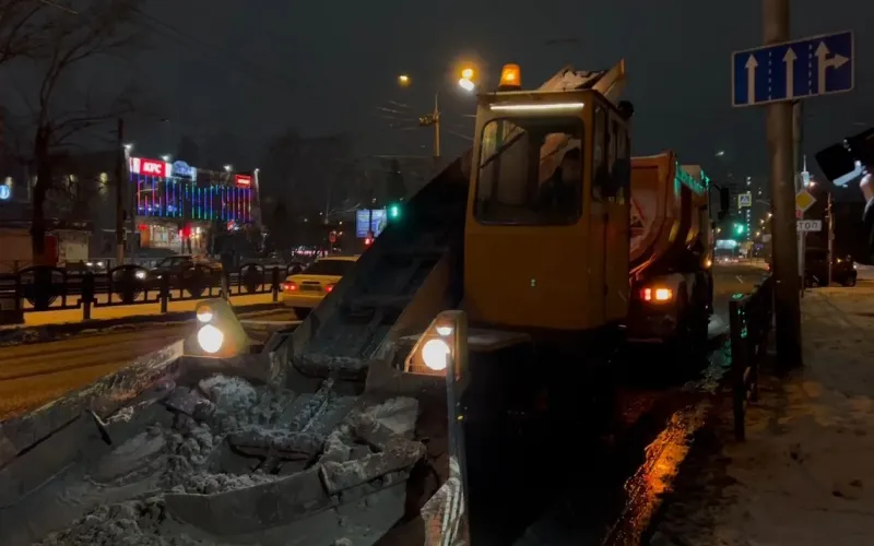 Дорожники круглосуточно чистят улицы Барнаула от снега