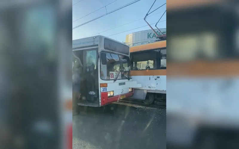 Автобус и трамвай столкнулись в Барнауле