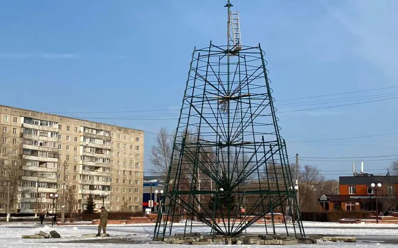 Новогоднюю ель устанавливают на центральной площади в Заринске
